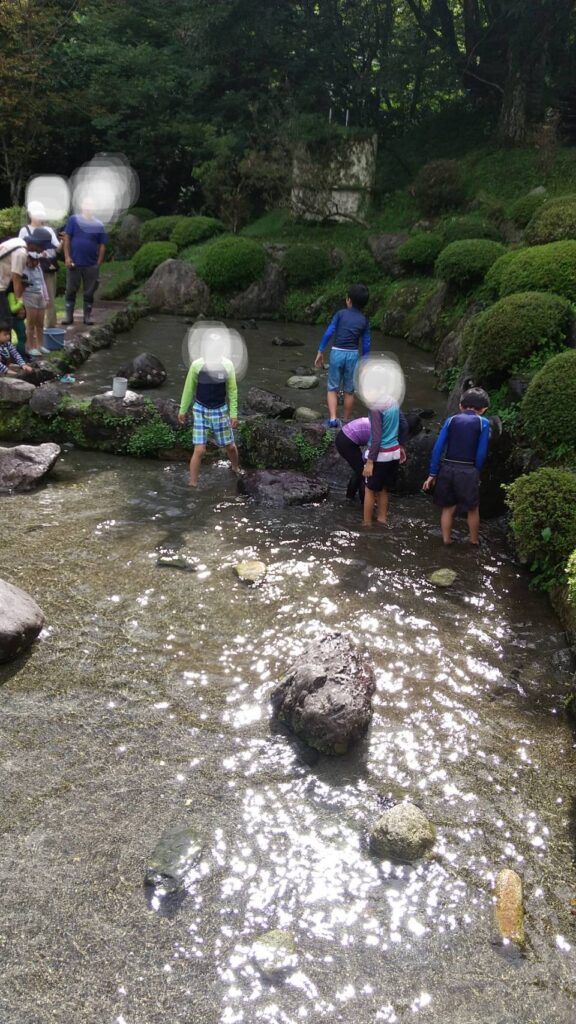 暗い中での宝探しは、皆ワクワク、ドキドキしながら全て探し出す事が出来ました。2日目:マスつかみ、川での水遊び、スイカ割り、バター作り、マスのホイル焼・塩焼作り、スタンツ、キャンプファイヤー、カブはテント宿泊体験。マスつかみは、最初はつかめず悪戦苦闘していましたが、つかむ為にはどうすれば良いか作戦を皆で声を掛け合う事で、最後には池の中の20匹全てをつかまえる事が出来ました。また、メインイベントのキャンプファイヤーでは、多くのキャンプソングを親子で歌い、愉しい時間となりました。サプライズで、親達も突然スタンツを行う事となり、親子共々想い出になる時間になったのでは…。3日目:手紙書き、鹿角でのキャッチボール(オゴ)。この他にも、地元のうどんを使ったサラダうどん、子供達に人気のカレーパスタ等美味しい料理を愉しみました。小雨が降る時もありましたが、手作り感のある、また親子で愉しみ学びのあるキャンプが出来たのではないでしょうか。