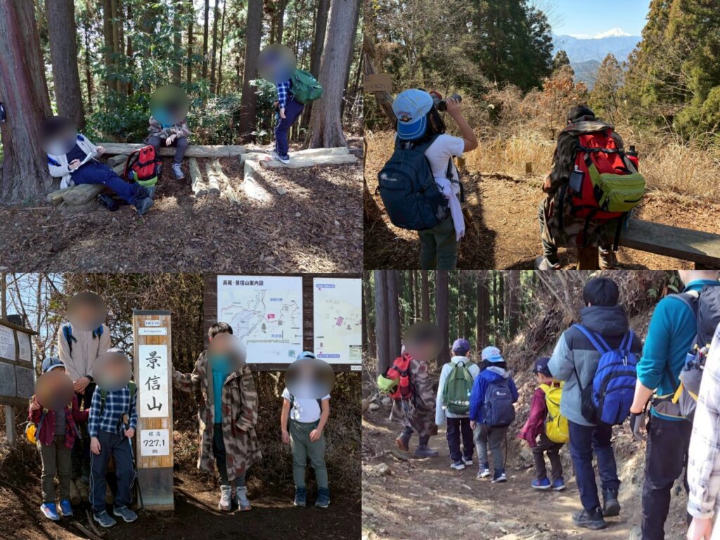 電車、バスを乗り継いで、高尾山の隣の景信山登山に行ってきました。ボーイ隊の2人が地図を確認しながら登り、ボーイ隊カブ隊ビーバー隊それぞれの課題をこなしていきました。少し肌寒い位のよい天気で、山頂からの見晴らしがとても良かったです。ビーバースカウトの歩くペースに合わせて歩いてくれたので全員しっかり歩き切ることができました!